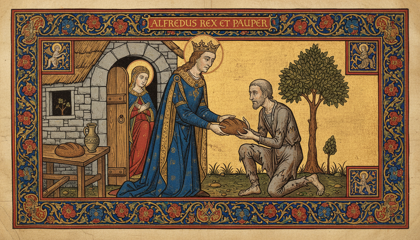 "Alfred, my son, be brave," said the man; "for I am the one to whom you gave this day the half of all the food that you had. Be strong and joyful of heart, and listen to what I say. Rise up early in the morning and blow your horn three times, so loudly that the Danes may hear it. By nine o'clock, five hundred men will be around you ready to be led into battle. Go forth bravely, and within seven days your enemies shall be beaten, and you shall go back to your kingdom to reign in peace."